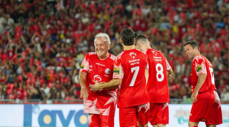 O já tradicional Jogo das Estrelas contou neste sábado (27), no Maracanã, com o protagonismo de sempre de Zico, promotor da festa, e também de jogadores do elenco do Flamengo, que conquistou neste ano os títulos do Carioca, Supercopa Rei, Brasileiro e Libertadores. O Galinho, ao lado de Júnior, também ídolo do Flamengo e parte do time campeão mundial de 1981, levantaram os troféus da Série A e da Libertadores ao lado dos atletas Léo Ortiz, Jorginho e Pedro, que também participaram da festa.
